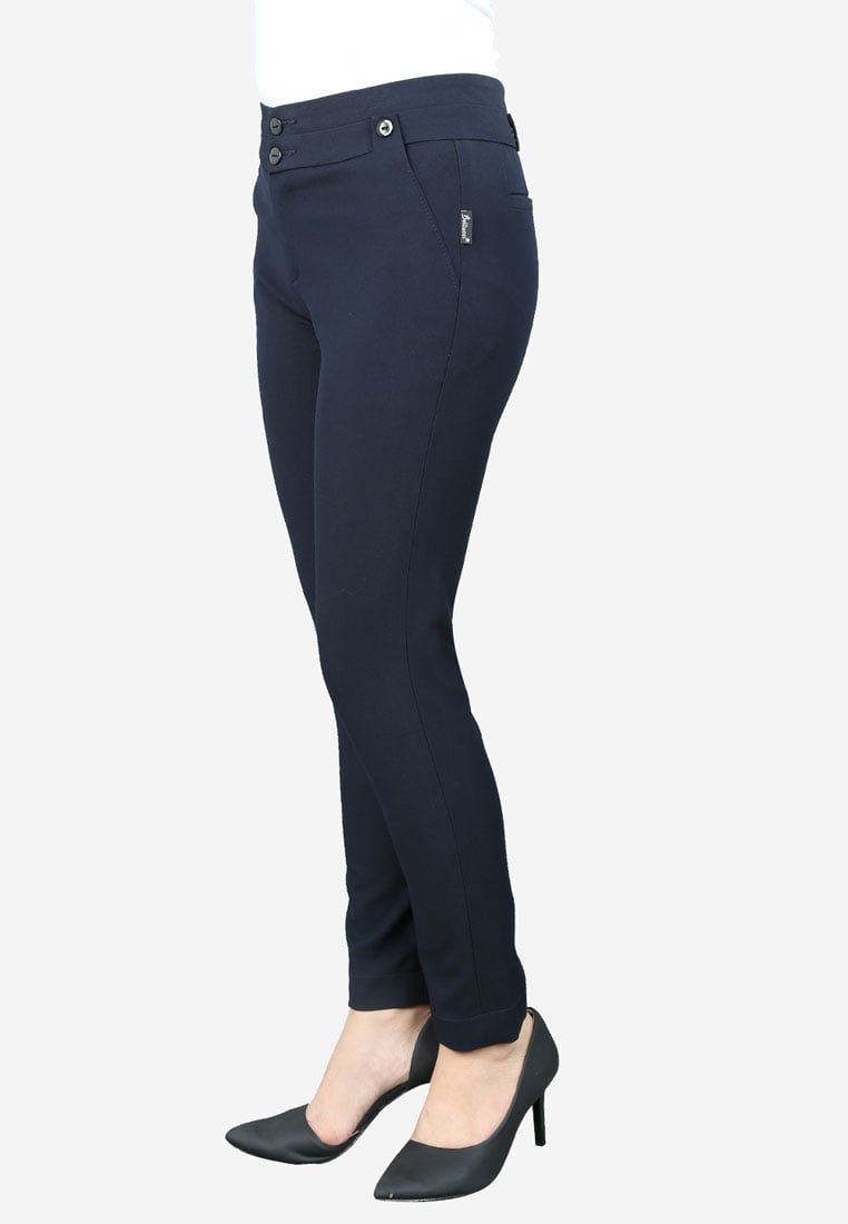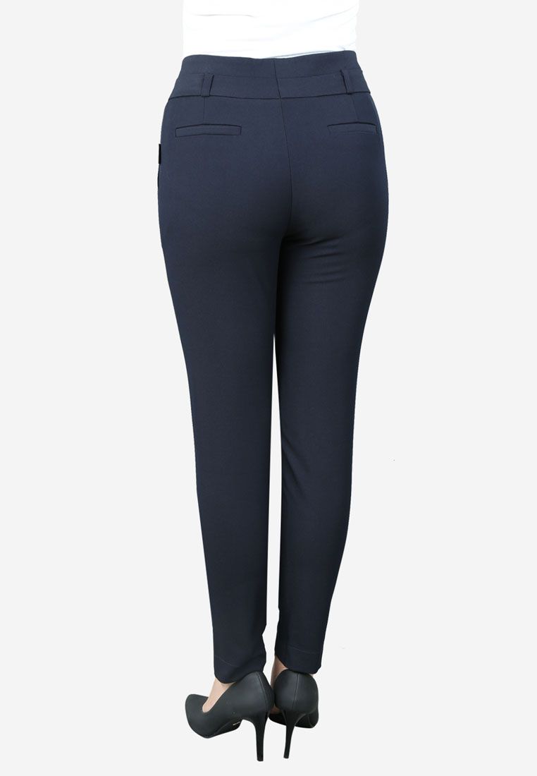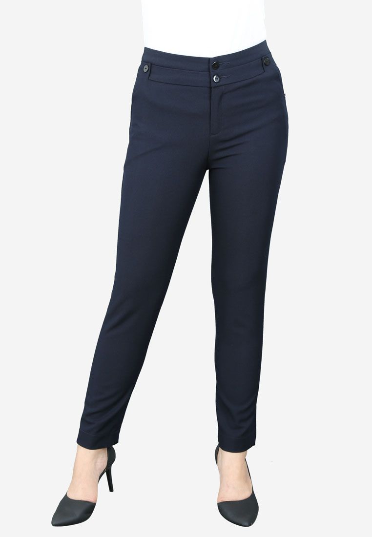 Quần ống côn bò lụa tím than cạp 2 tầng 2 khuy đỉa chờm đính khuy