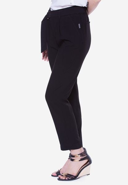 Quần ống côn thụng mango đen li thân trước dây đai rời cạp trước xếp chồng cạp sau chun