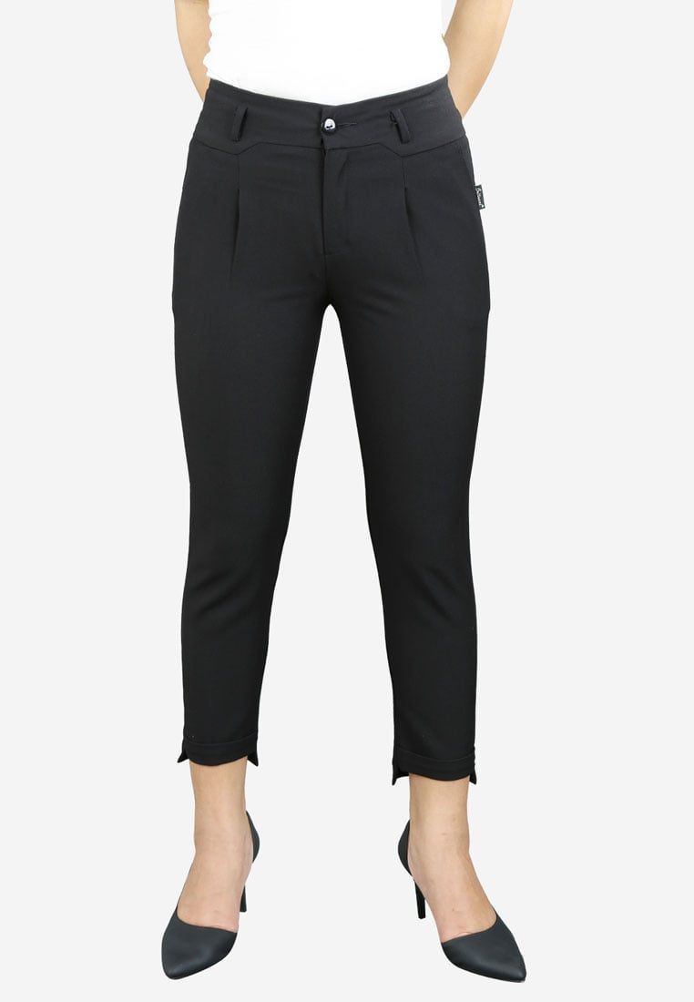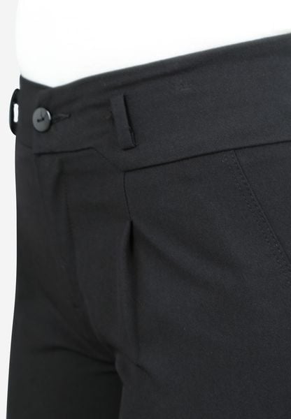Quần côn cộc bò đen cạp V 1 khuy gấu đáp lệch lơ vê trước