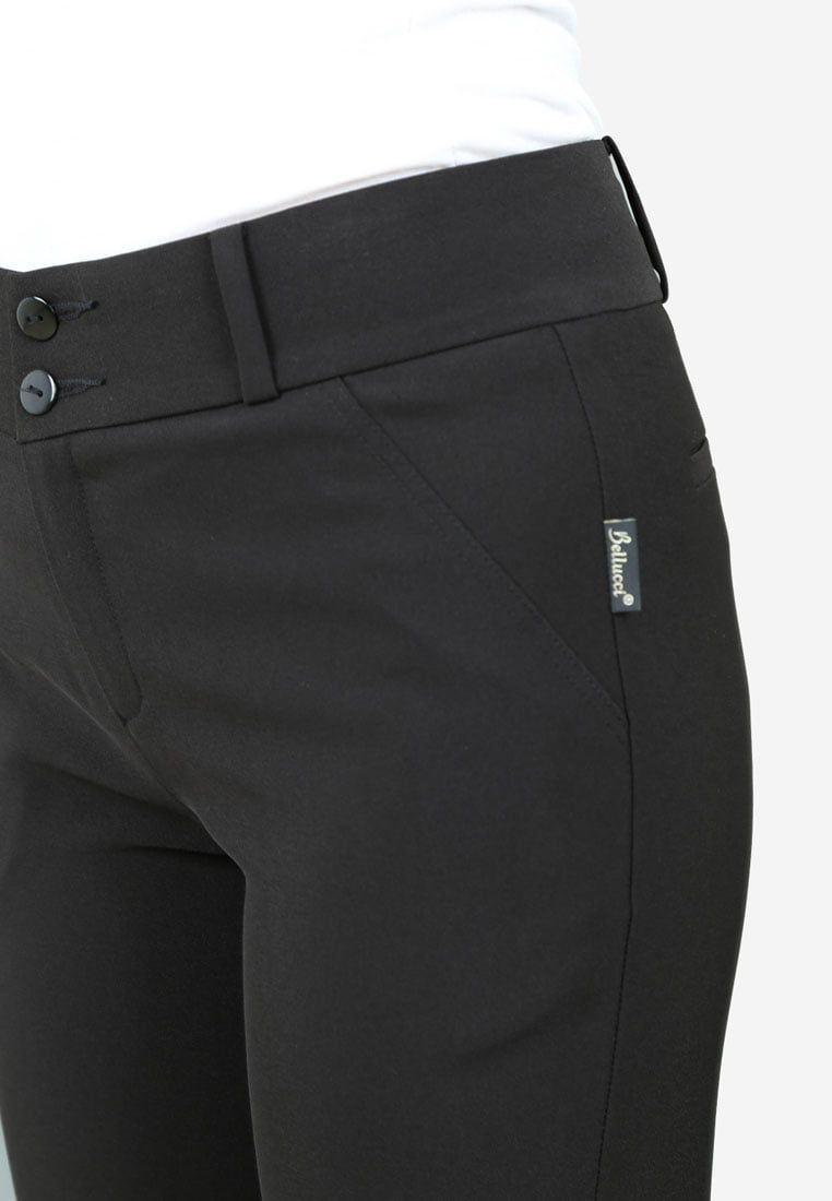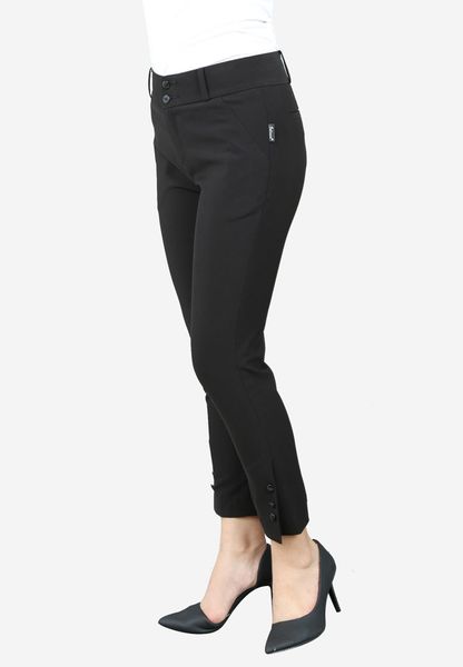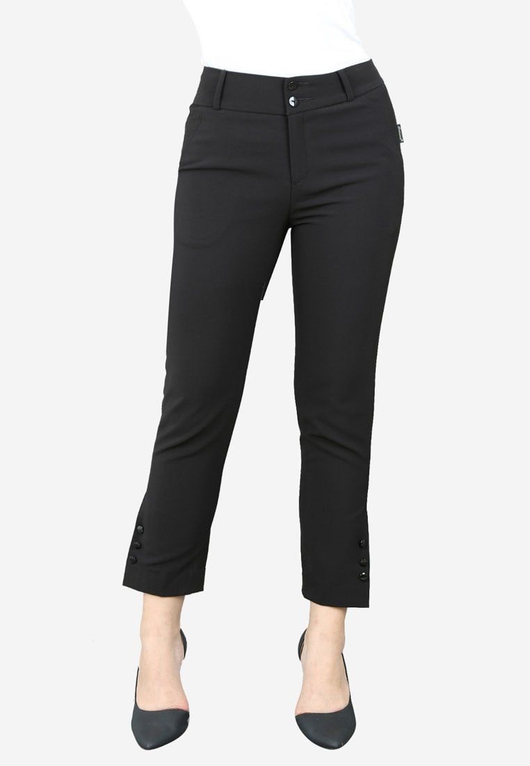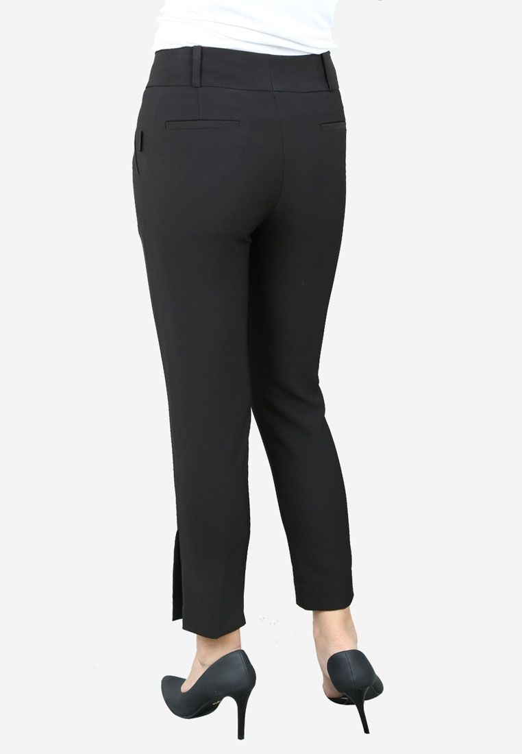 Quần ống côn trượt đen Hàn Quốc cạp 6 cm túi chéo gấu xẻ đính khuy