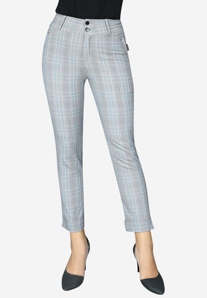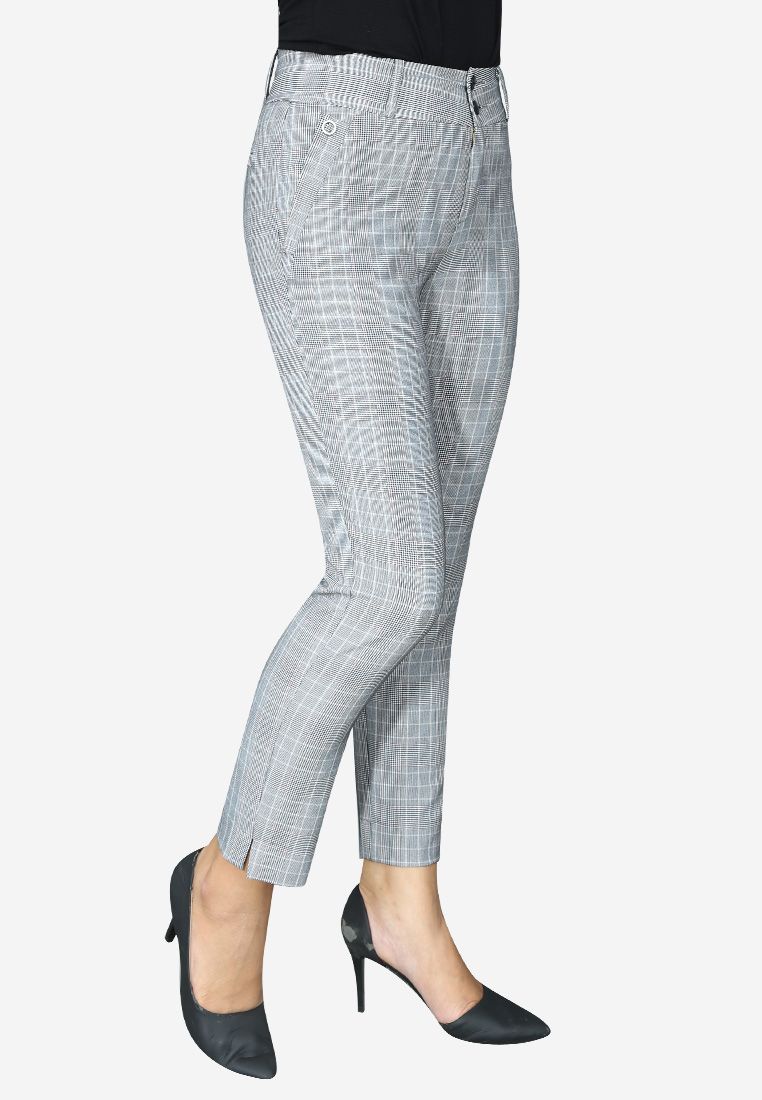 Quần ống côn vải caro ghi hồng cạp 6 cm 2 khuy ô rê túi xẻ gấu