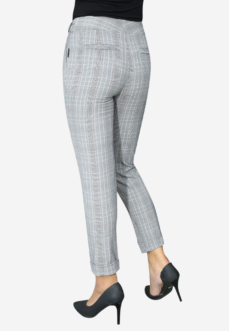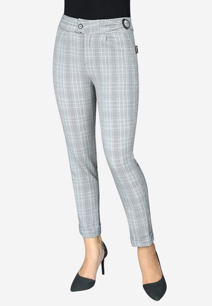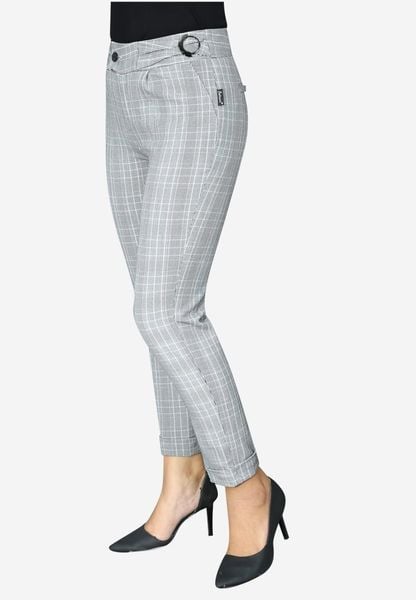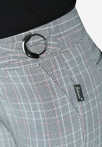 Quần ống côn cộc vải caro ghi hồng túi chéo nơ đai vòng kim loại
