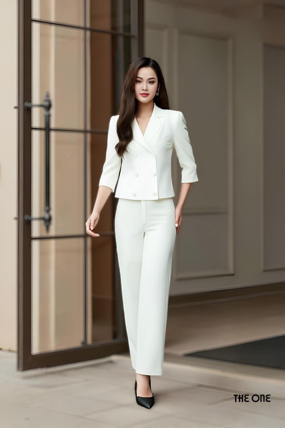 Quần ống suông gai text trắng 1 khuy túi chéo