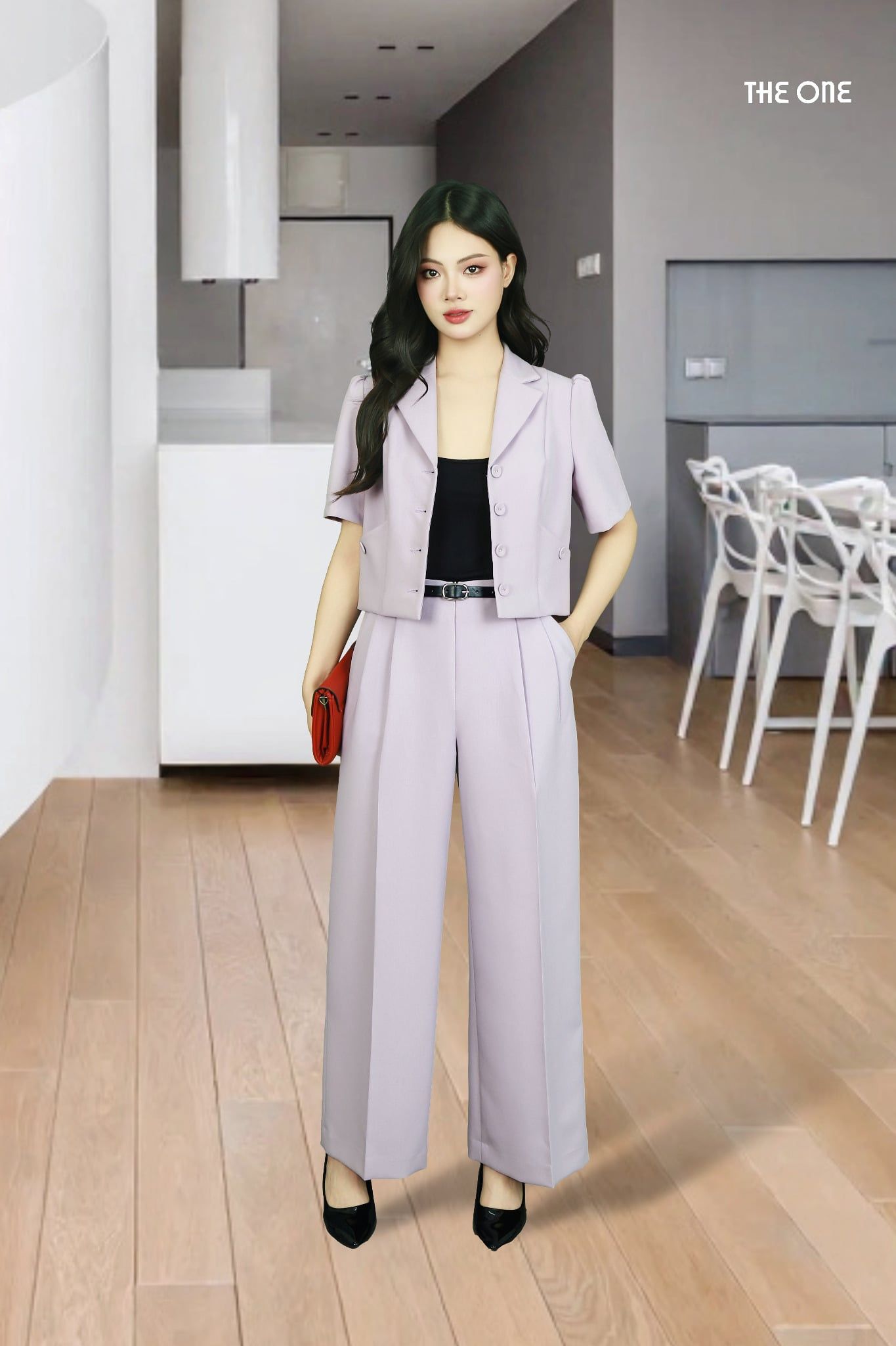 Quần ống suông Gai tex tím mí cap quai nhê trong