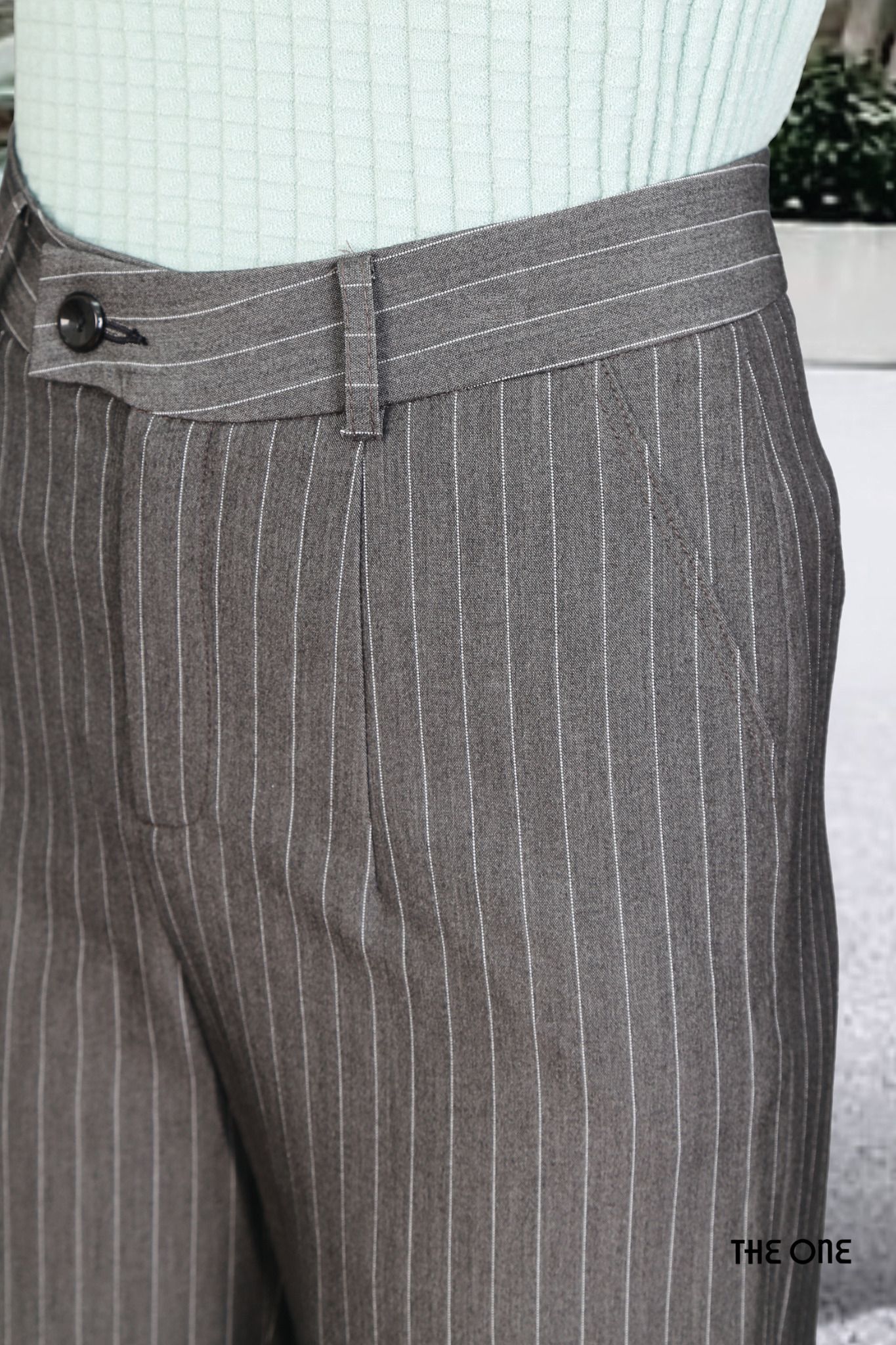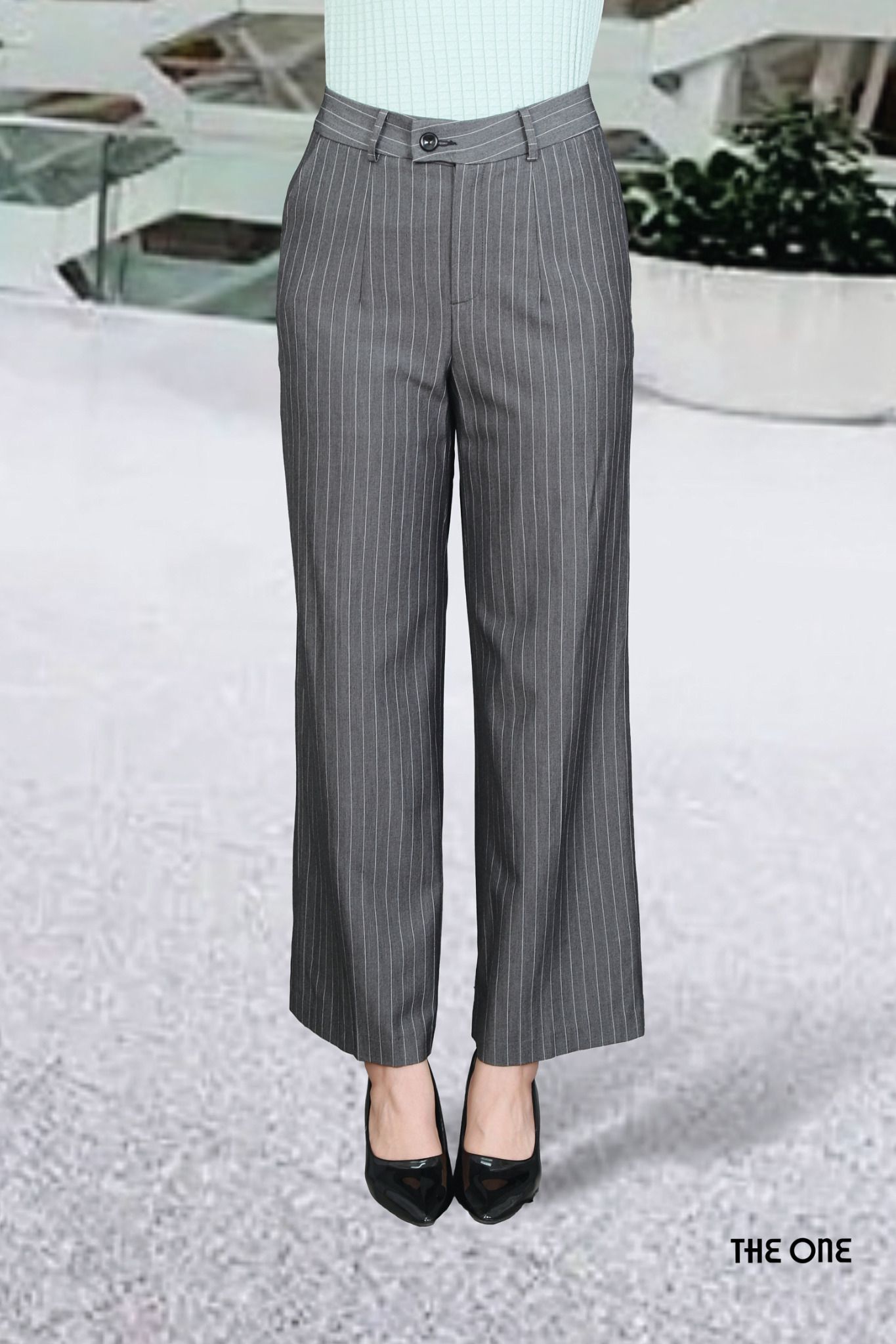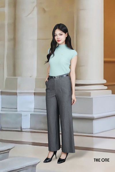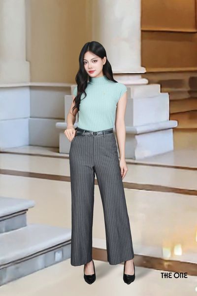 Quần ống suông kẻ ghi li trước túi chéo