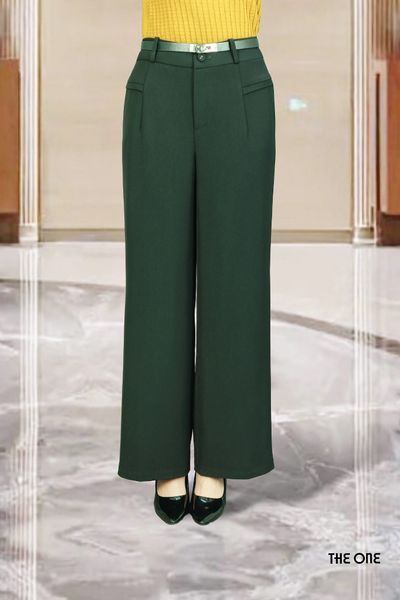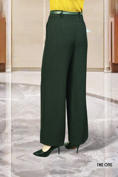 Quần ống suông rộng trượt đen nẹp mí ngang hông
