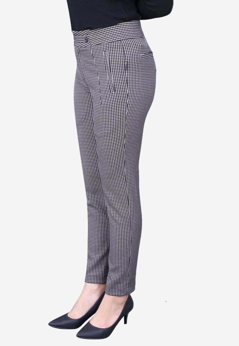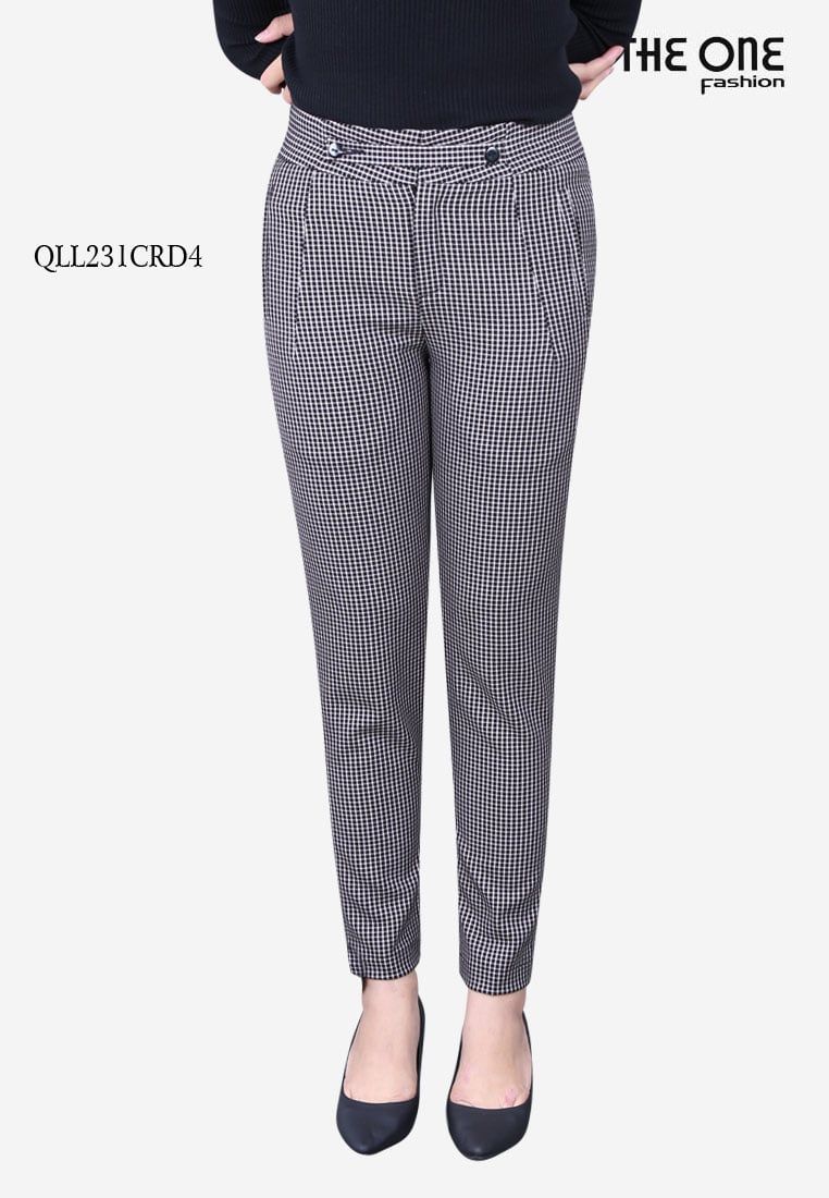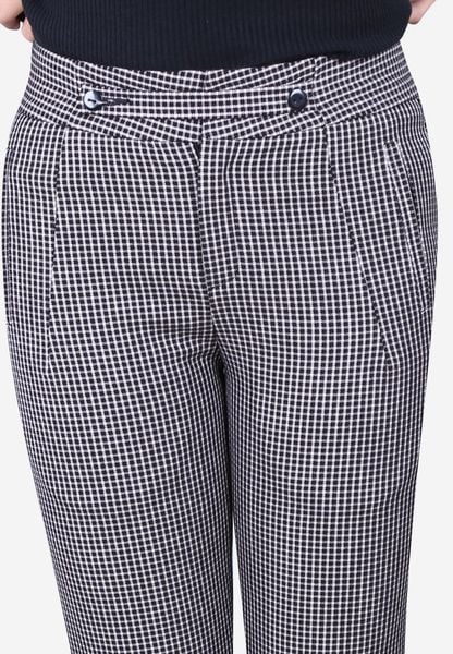Quần ống côn caro đen cạp 5 cm túi cơi thẳng quai nhê nhỏ lật trang trí