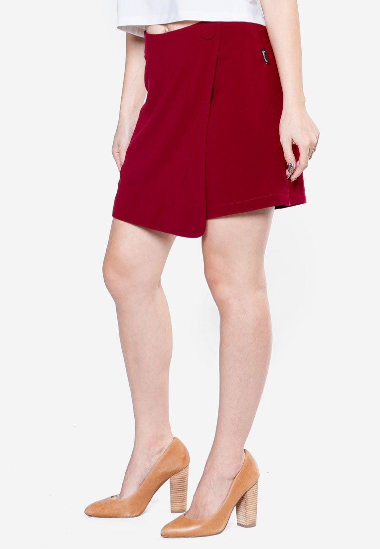 Quần giả váy mango đỏ đô đáp tà trước 1 khuy và 1 túi cơi trang trí