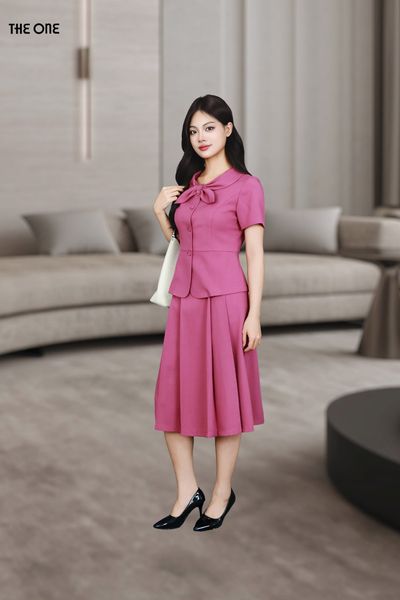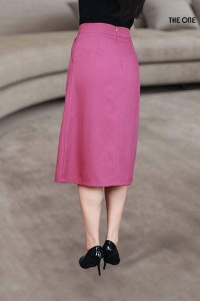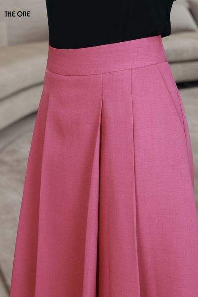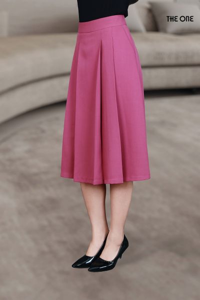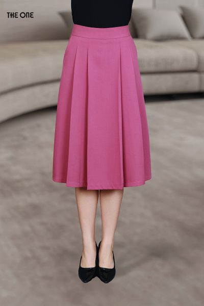 Chân váy 2 lớp dáng A xước hồng tím xếp ly thân trước