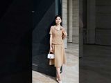 Chân váy 2 lớp dáng A xước nâu xếp ly thân trước
