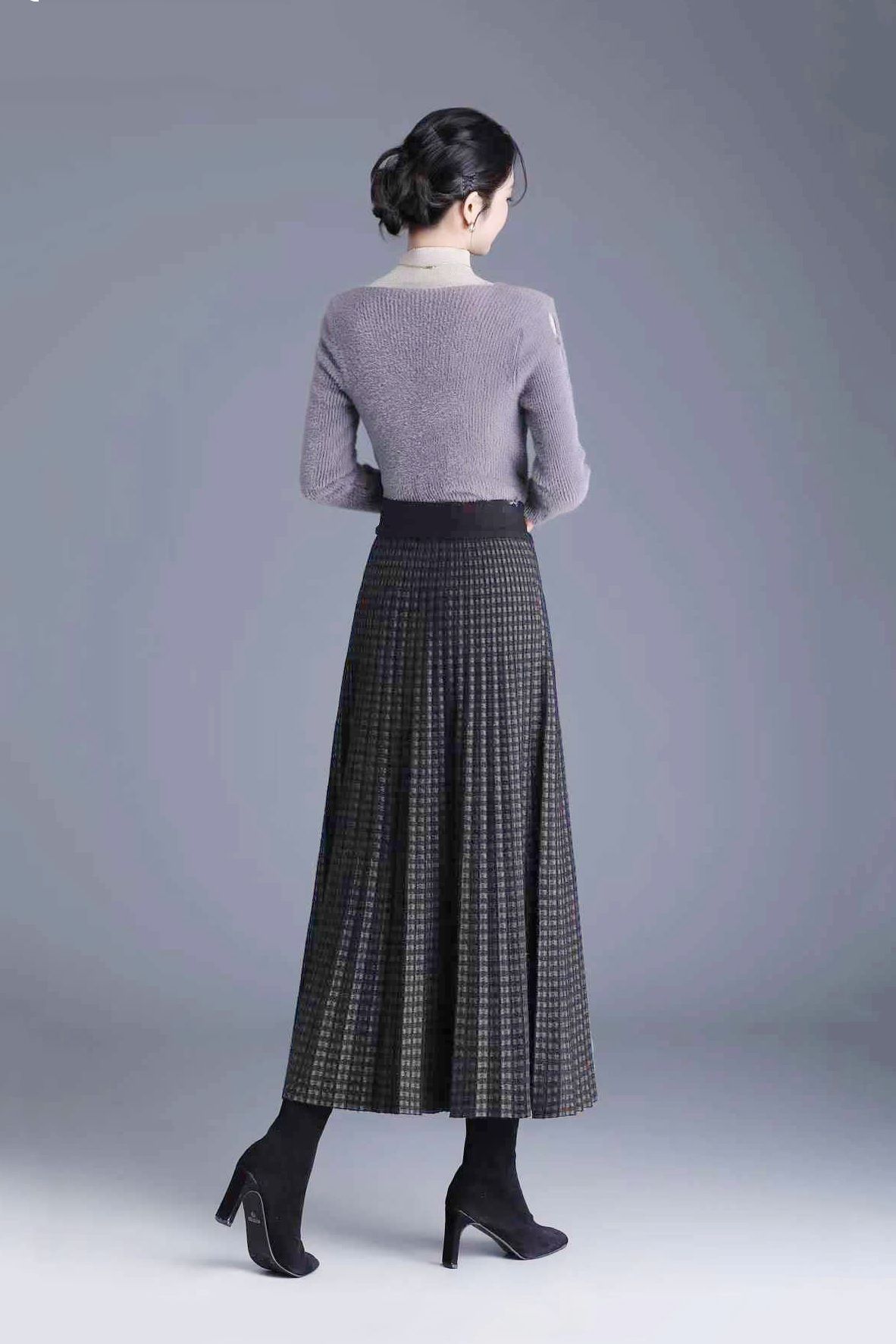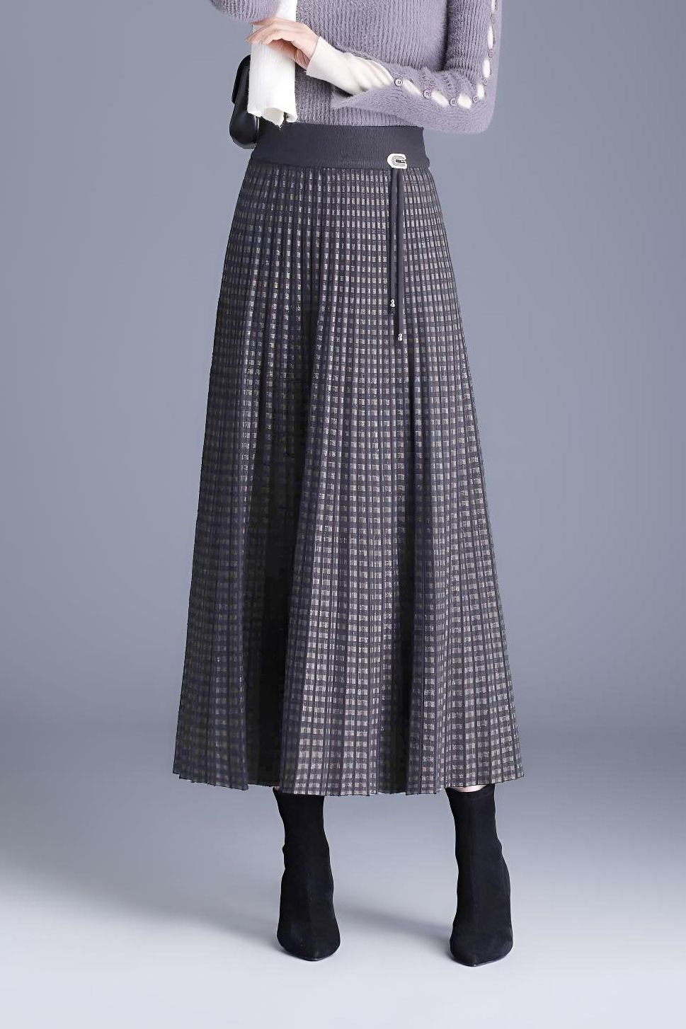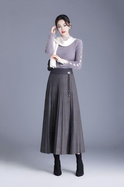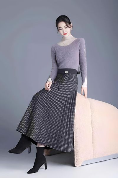 Chân váy 1 lớp cạp chun ca rô nâu dáng xòe