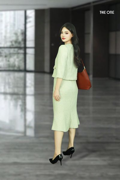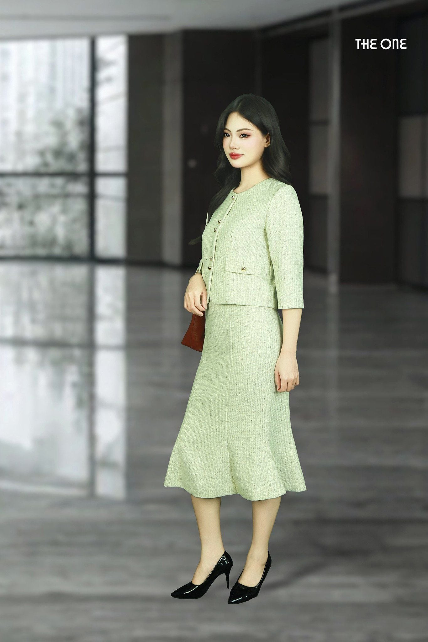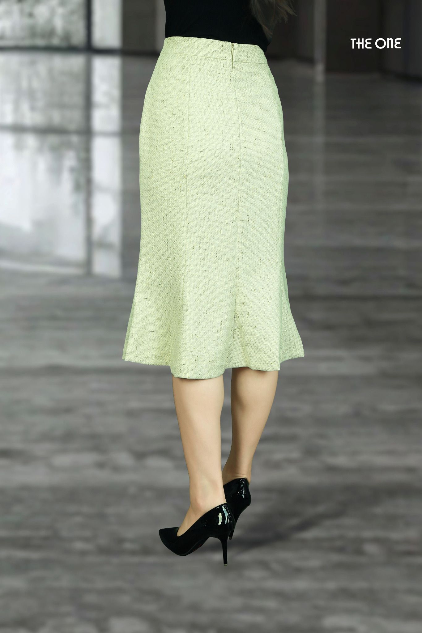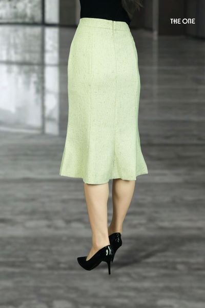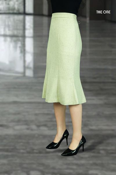 Chân váy 2 lớp Dạ Tweed đốm be chân xòe đuôi cá
