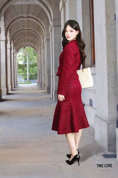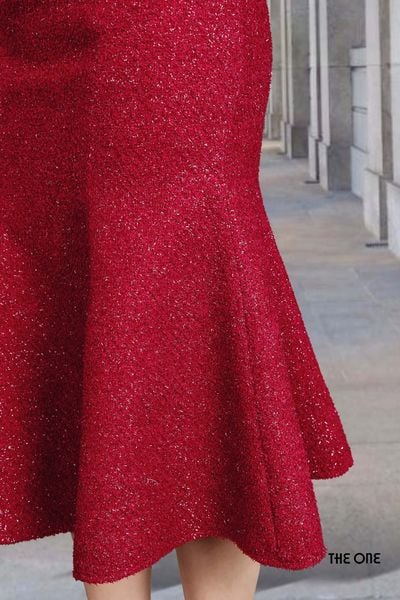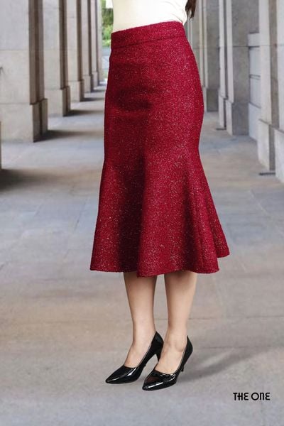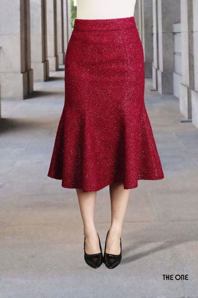 Chân váy 2 lớp đuôi cá xoè dạ đỏ đô KT