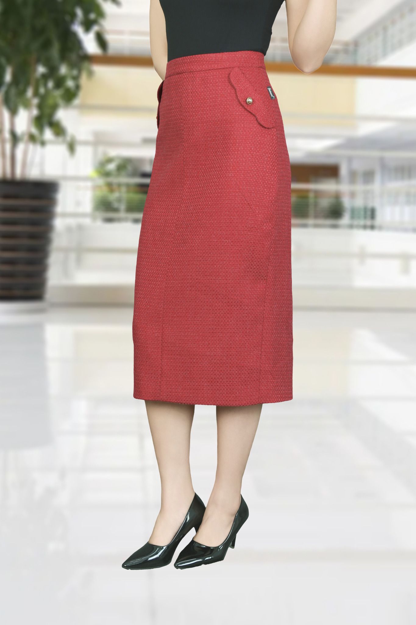 Chân váy 2 lớp dạ xốp đỏ đô dáng bút chì dài