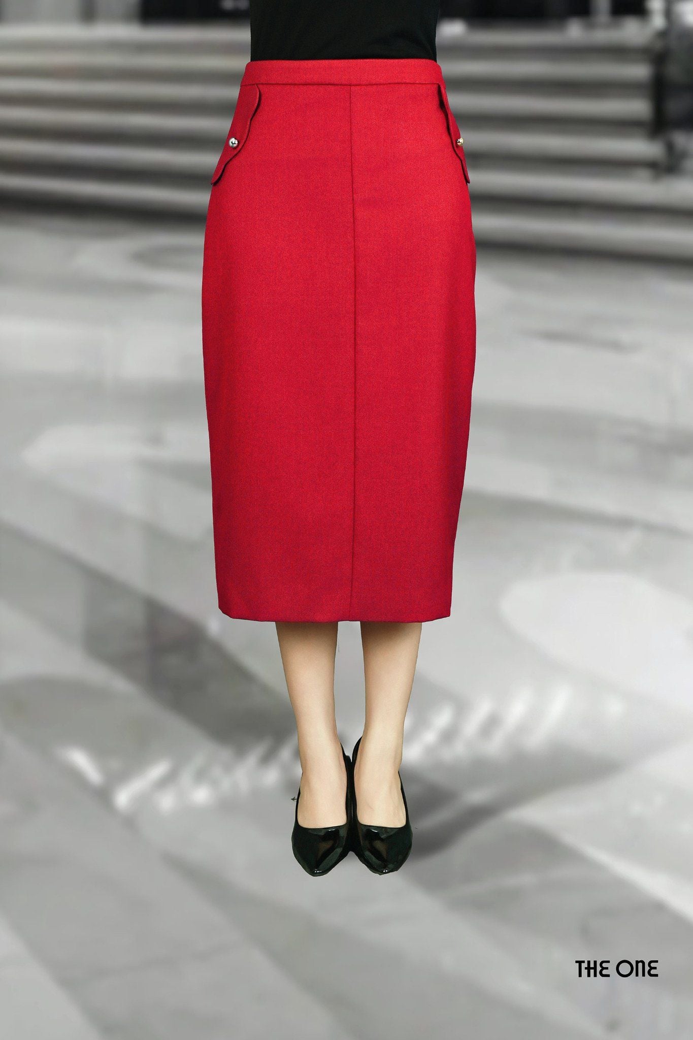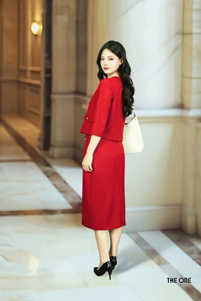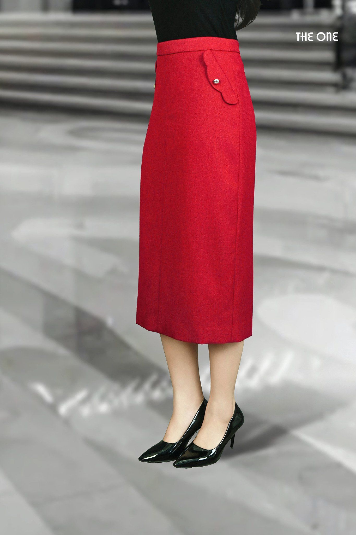 Chân váy 2 lớp Tuýt-si len đỏ đô dáng bút chì dài