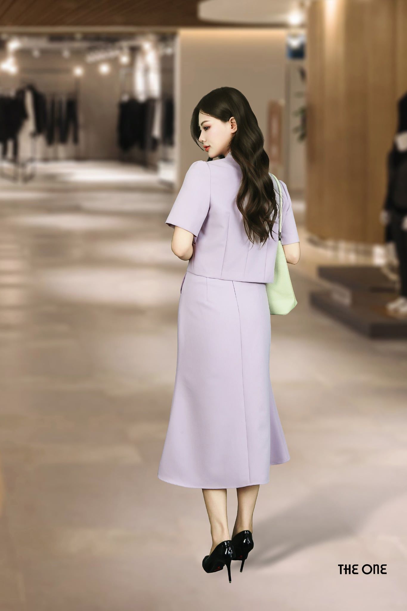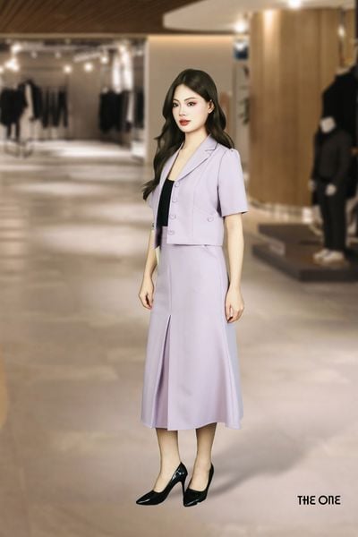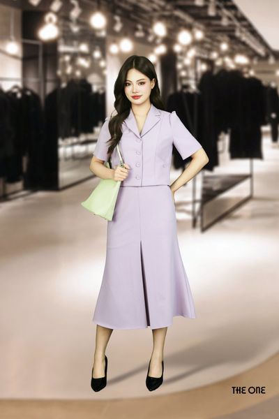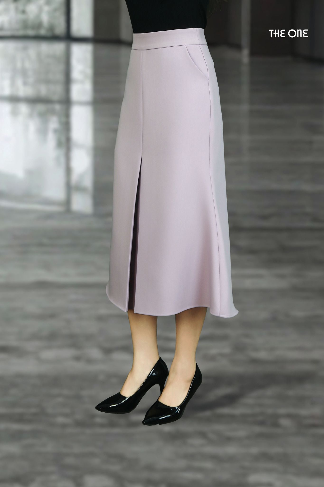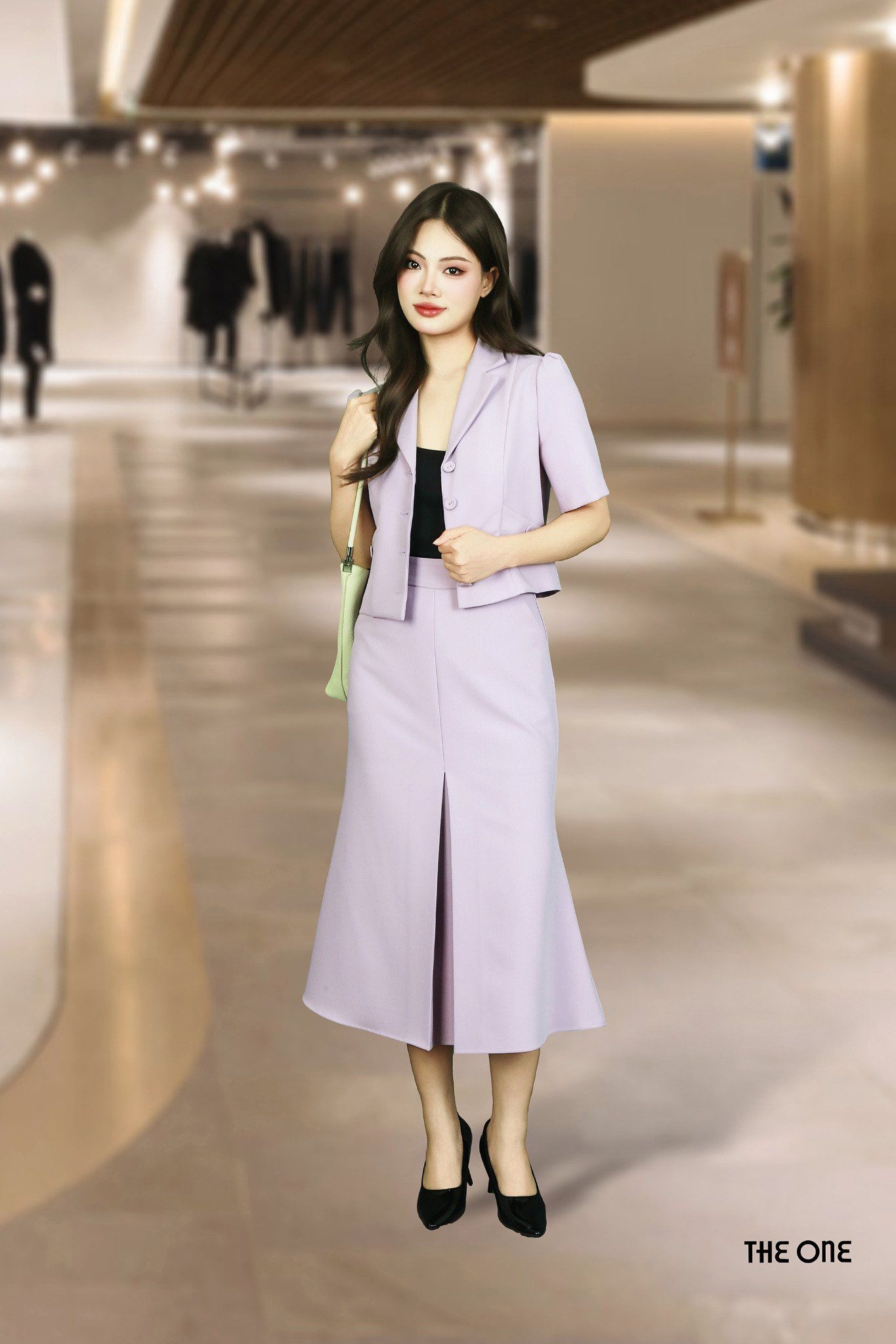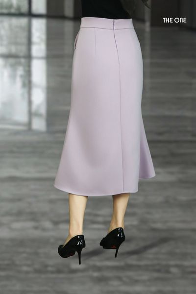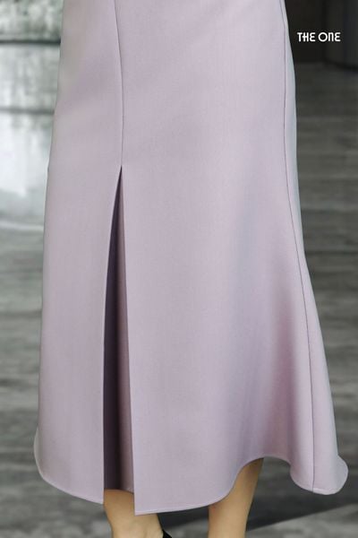 Chân váy 2 lớp dáng đuôi cá gai tếch tím chụm thân trước