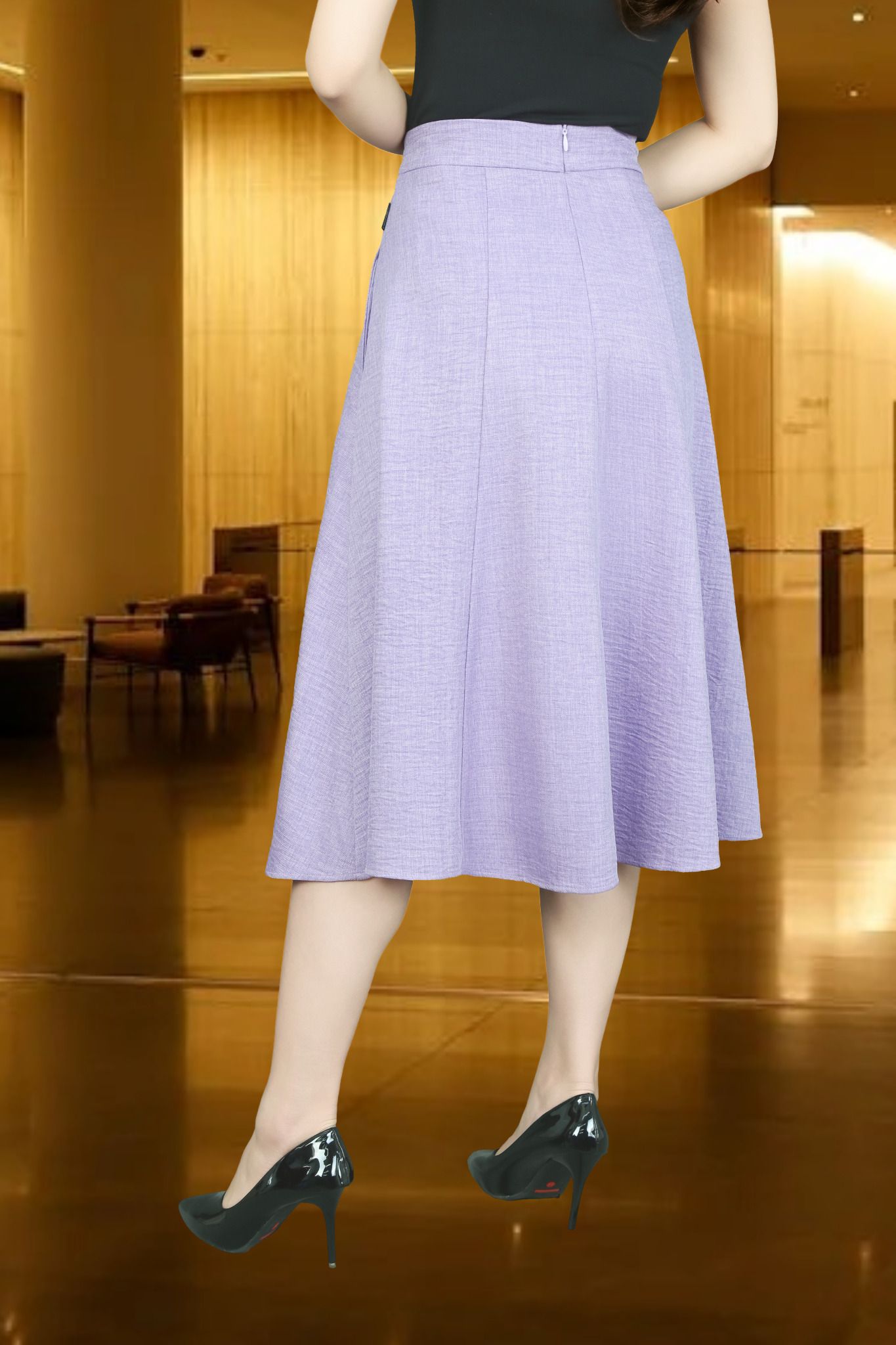 Chân váy 2 lớp xòe nhăn tím cạp trơn
