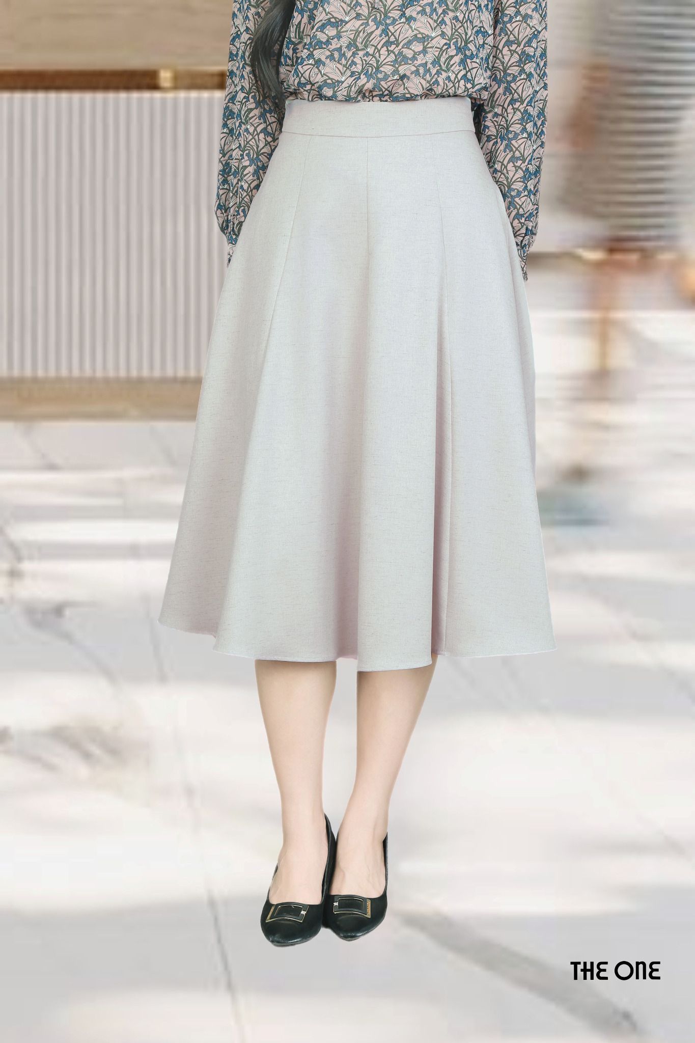 Chân váy 2 lớp xòe tuysi trắng ghi cạp trơn