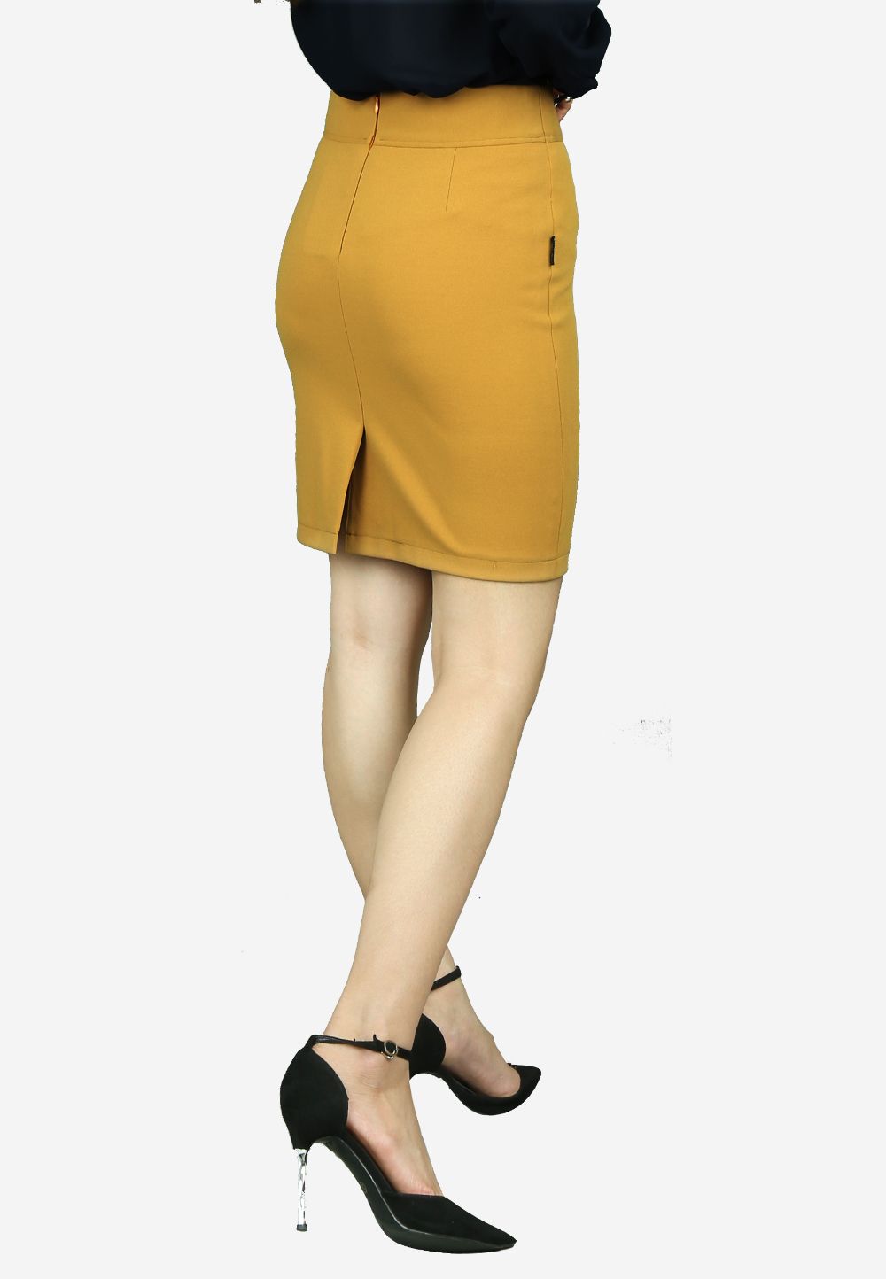 Chân váy 1 lớp nâu đậm cạp 5 phân xẻ sau
