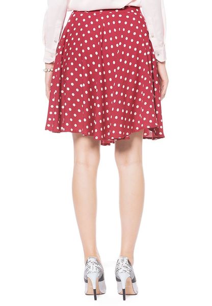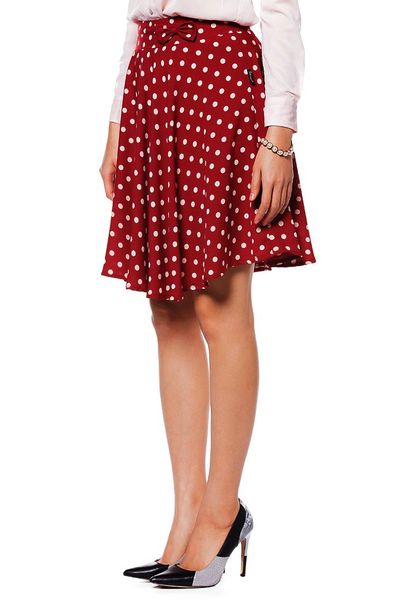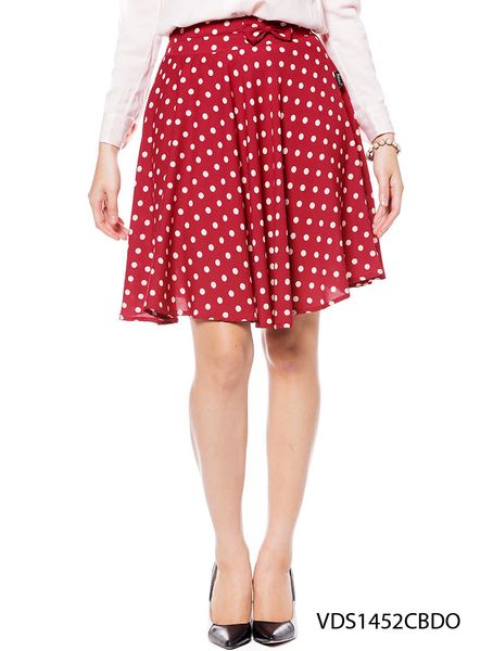 Chân váy xòe chấm bi trắng nền đỏ 2 lớp cạp cao nơ cạp