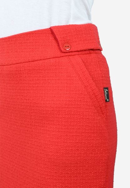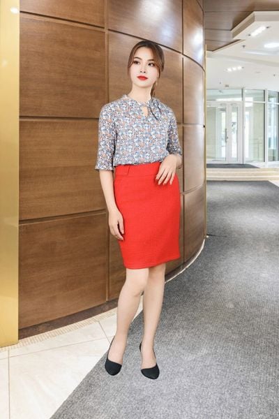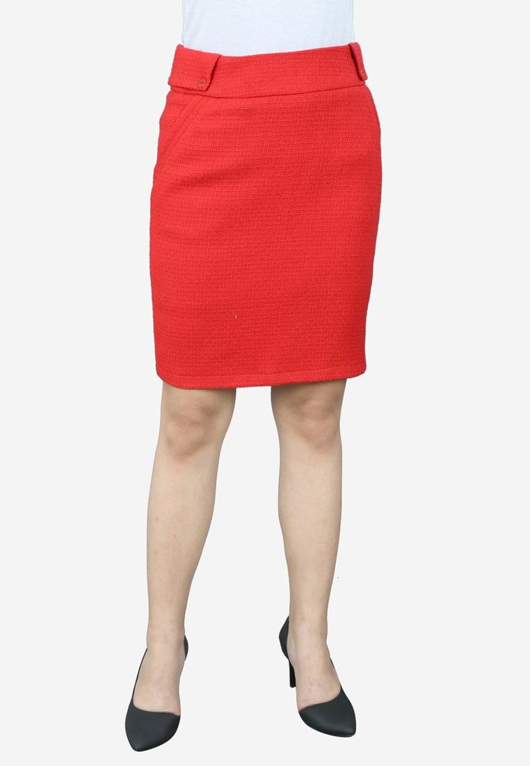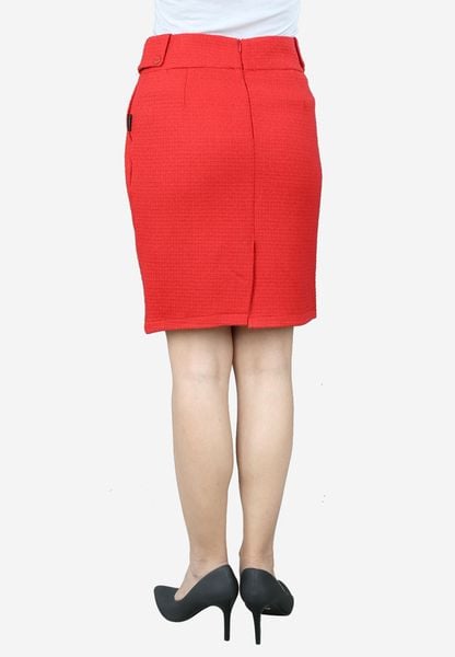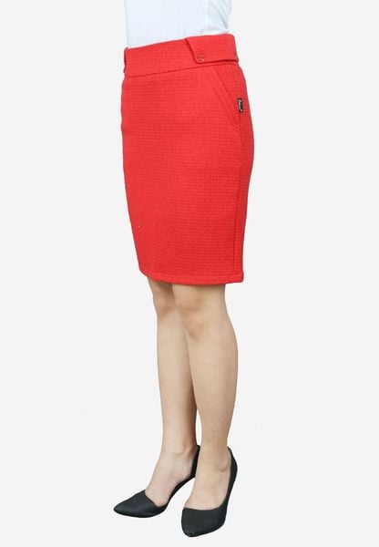 Chân váy 2 lớp len đỏ cạp 6 cm đáp sườn trang trí khuy