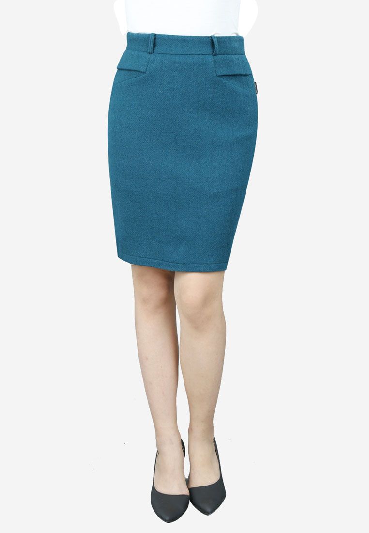 Chân váy 2 lớp dạ len xanh cạp 4 cm đỉa đơn