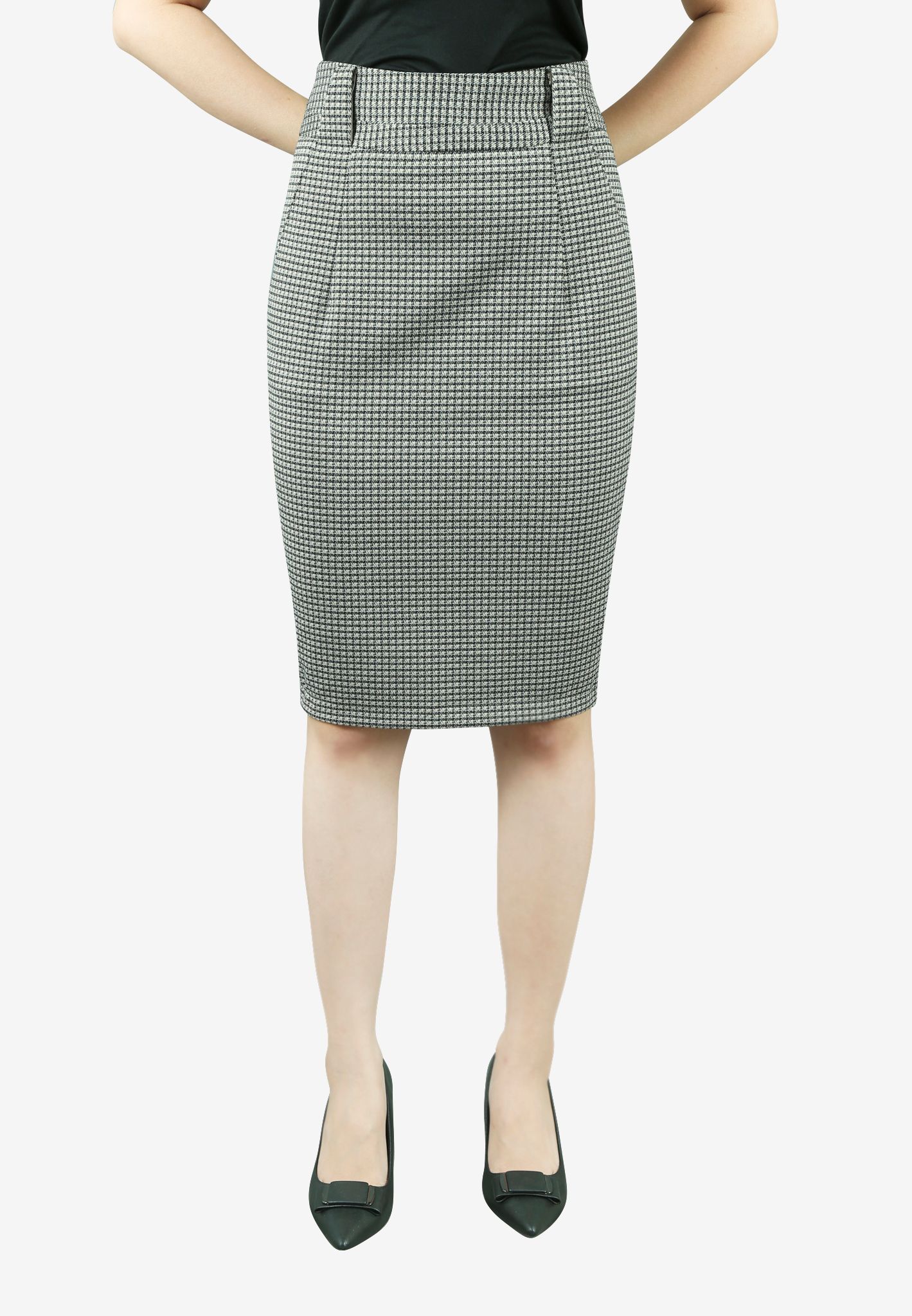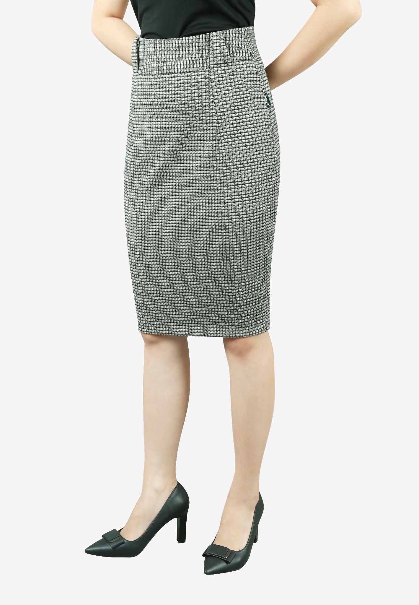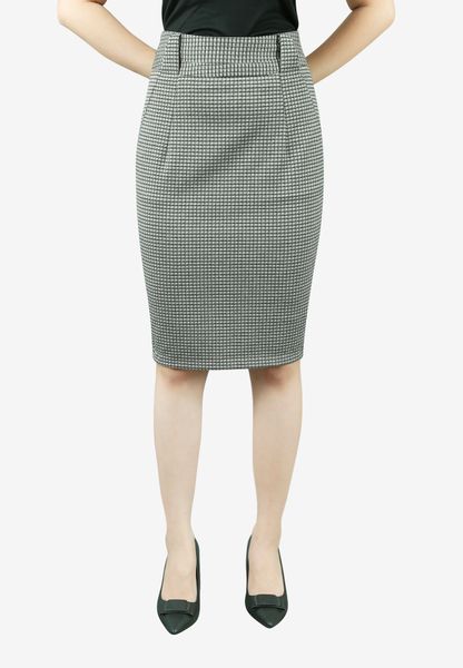 Chân váy 2 lớp vải u mì caro đen nâu dáng bút chì đỉa chéo liền li