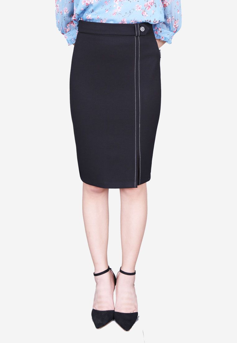 Chân váy bút chì 2 lớp vải chéo den đột chỉ dọc thân trước
