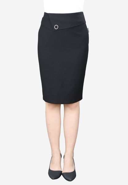 Chân váy bút chì 1 lớp bò đen cạp bong chéo trang trí ô rê to