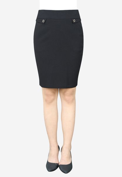 Chân váy ôm 2 lớp gạo đen túi chéo nắp túi đính ô rê